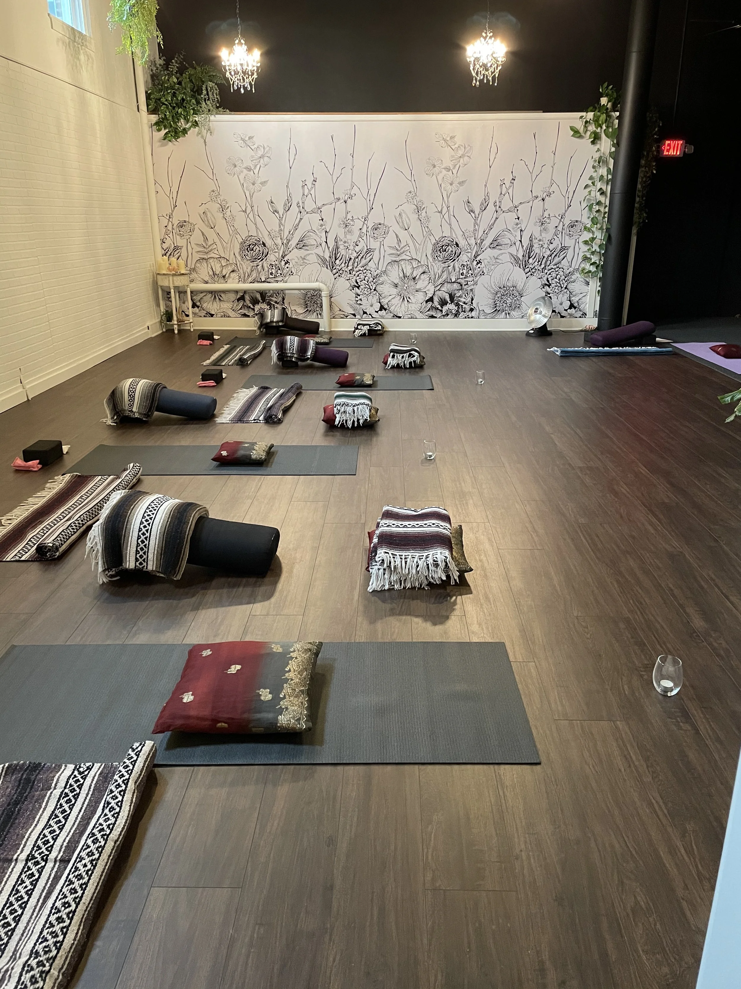 Please leave all props and mats in place after your class. We will disinfect them at that time. The room will be heavily saged after each class to clear the air.